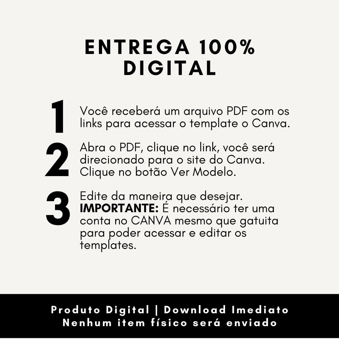 Entrega 100% digital e imediata ? você recebe o link de acesso aos templates no Canva assim que a compra for confirmada.